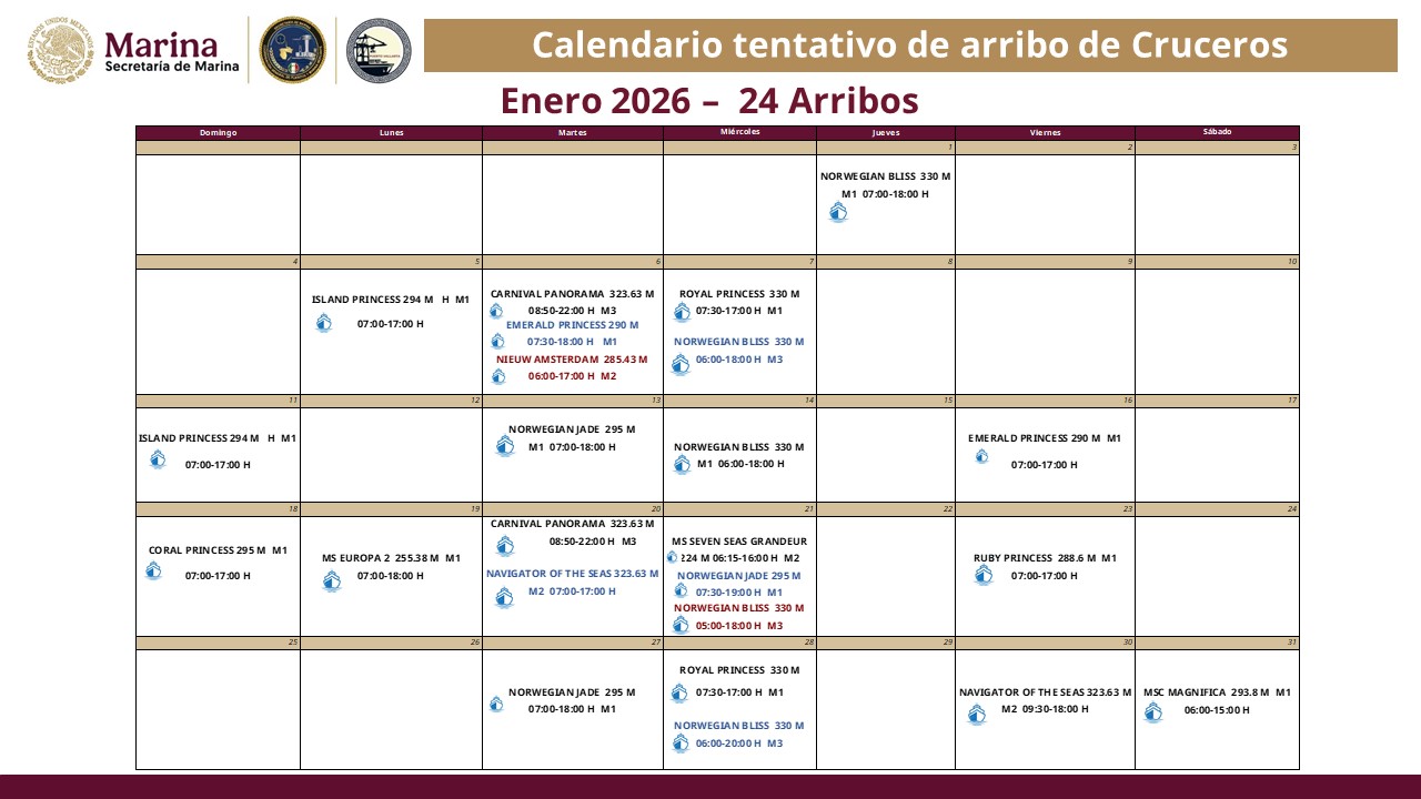 Calendario de arribos